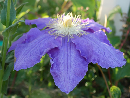 Im Gegensatz zur überschwänglichen Fülle der obigen Clematis, zeigt Lasurstern immer nur eine bescheidene Anzahl von 1 bis 5 Blüten. Seit vielen Jahren in einem Mauerspalt jedes Jahr ums Ueberleben kämpfend, der Schnecken wegen, erfreut sie mich aber doch immer wieder mit ihrer herrlichen blauen Farbe.