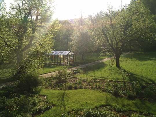 Die Kirschbäume sind inzwischen verblüht und wurden von den alten Apfelbäumen rechts abgelöst.
