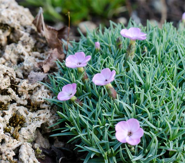 Hier sind jetzt die meisten Polster-Nelken in Blüte.Im letzten Herbst in Töpfe gesetzt, zeigen erstmals diese beidenihre mehr oder weniger reiche Pracht:Dianthus gracilis glaube ich mal ohne weiteres. Nachbestimmt habe ich sie nicht.Dianthus nivalis als Arbeitsname war mir suspekt und ich bin im amerikanischenForum auf Dianthus pungens subsp. brachyanthus gestoßen, zu der diese Pflanzen gehören könnte.