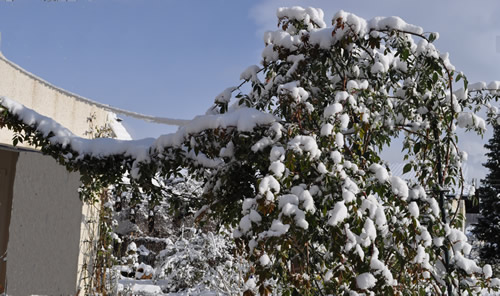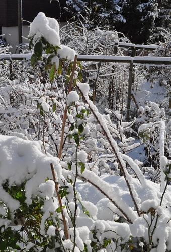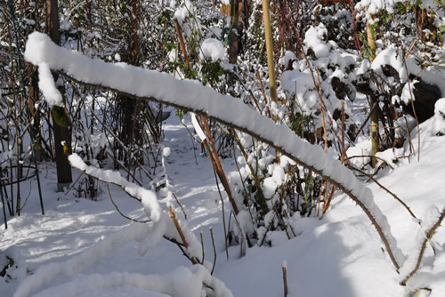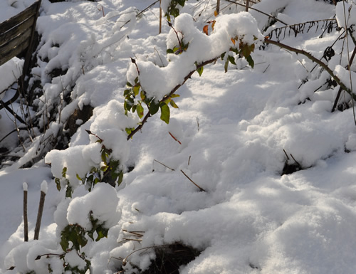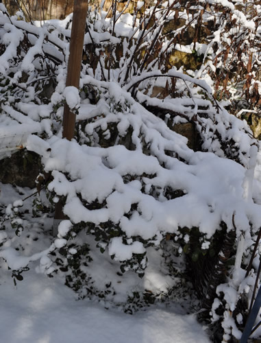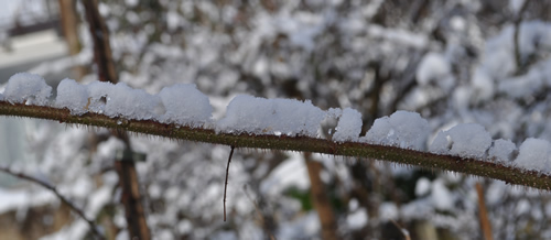 Schnee haben wir kaum, vielleicht 2-3 cm, mit großen Lücken.Dafür gefriert die Wäsche auf der Leine.