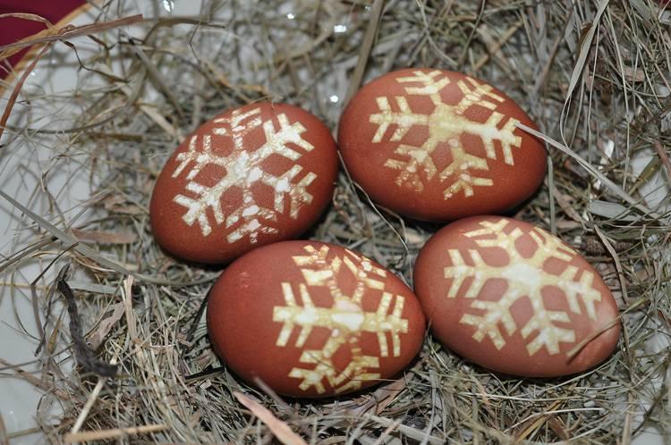 Passend zum Wetter haben wir unsere Ostereier mit Schneeflocken verziert.