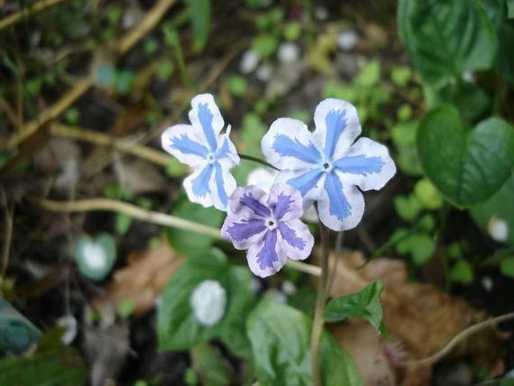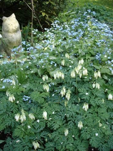 Meine ursprünglich drei "Jack Frosts" habe sich kräftig ausgesät und die Abkömmlinge weisen, wie Staudo schon schrieb, alle möglichen Varianten an Fleckungen auf. Aber sie haben eben auch alle diese schönen leuchtendblauen Blüten, die hier mit Dicentra "Aurora" anbändeln.