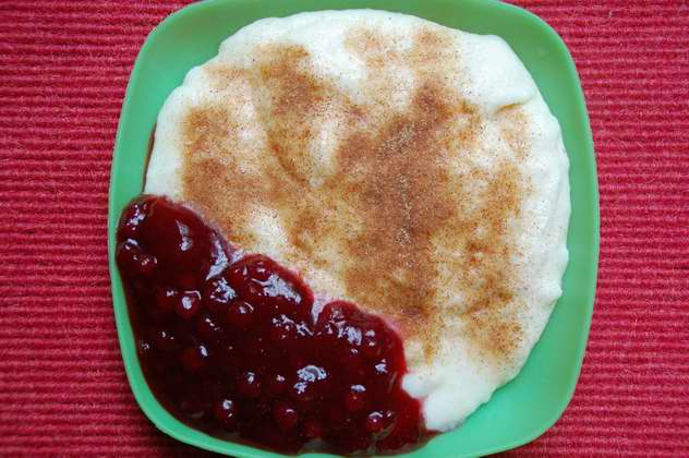 . Mal was anderes als dauernd nur Grillfleisch oder -wurst.Hier gab es Grießbrei mit Z&Z und Preiselbeeren.