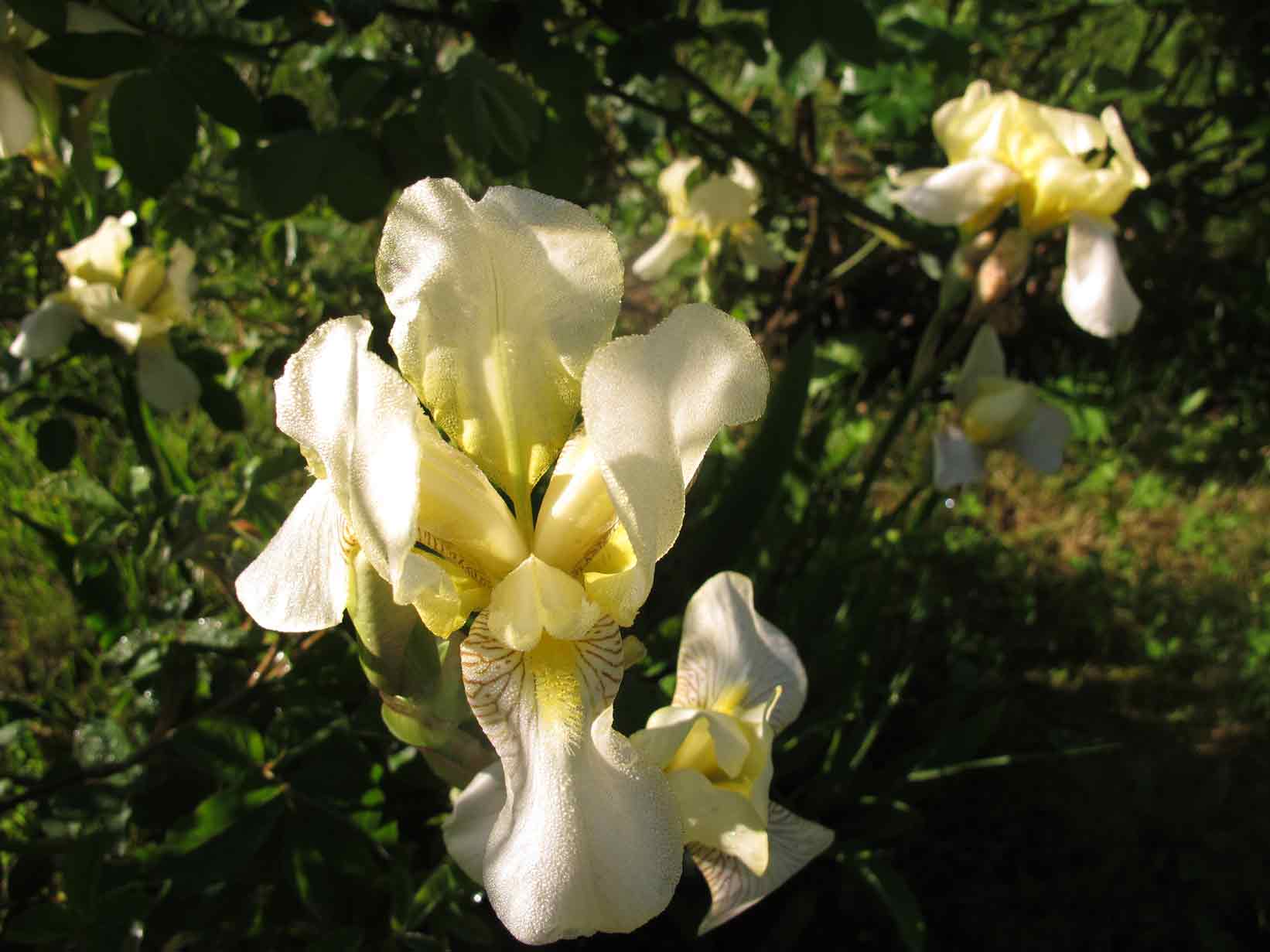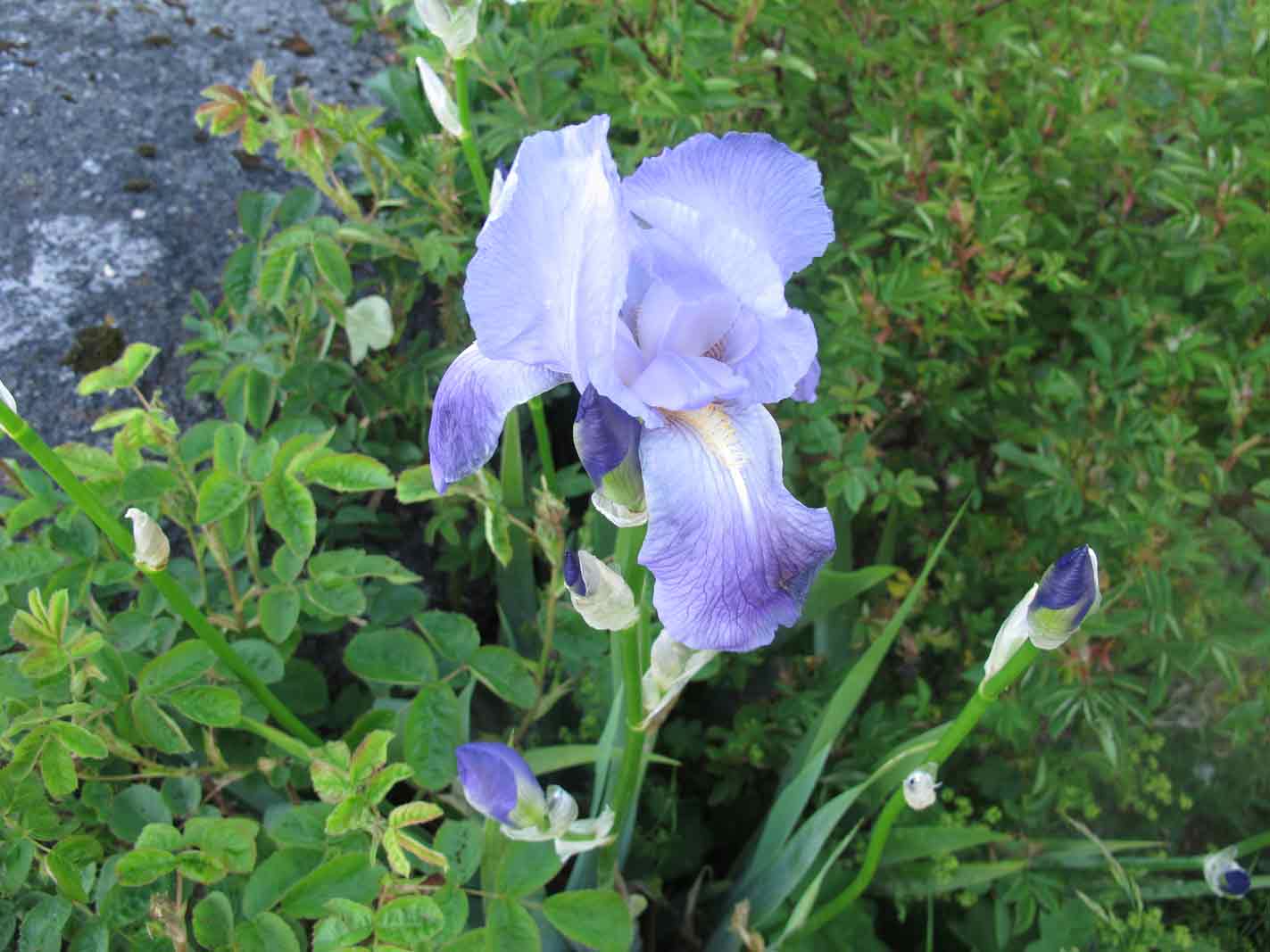 das ist Aquilegia atrata und drüber Iris pallida, die Bleiche Schwertlilie und oben die gelbe ist Iris flavescens, die Hellgelbe Schwertlilie. moreno zeigt die Tradenscantia 'Osprey', die ich leider nicht mehr habe, aber sehr liebe.Kann jemand sagen wie gut sich eingewachsene Tradescantien gegen Gras behaupten?