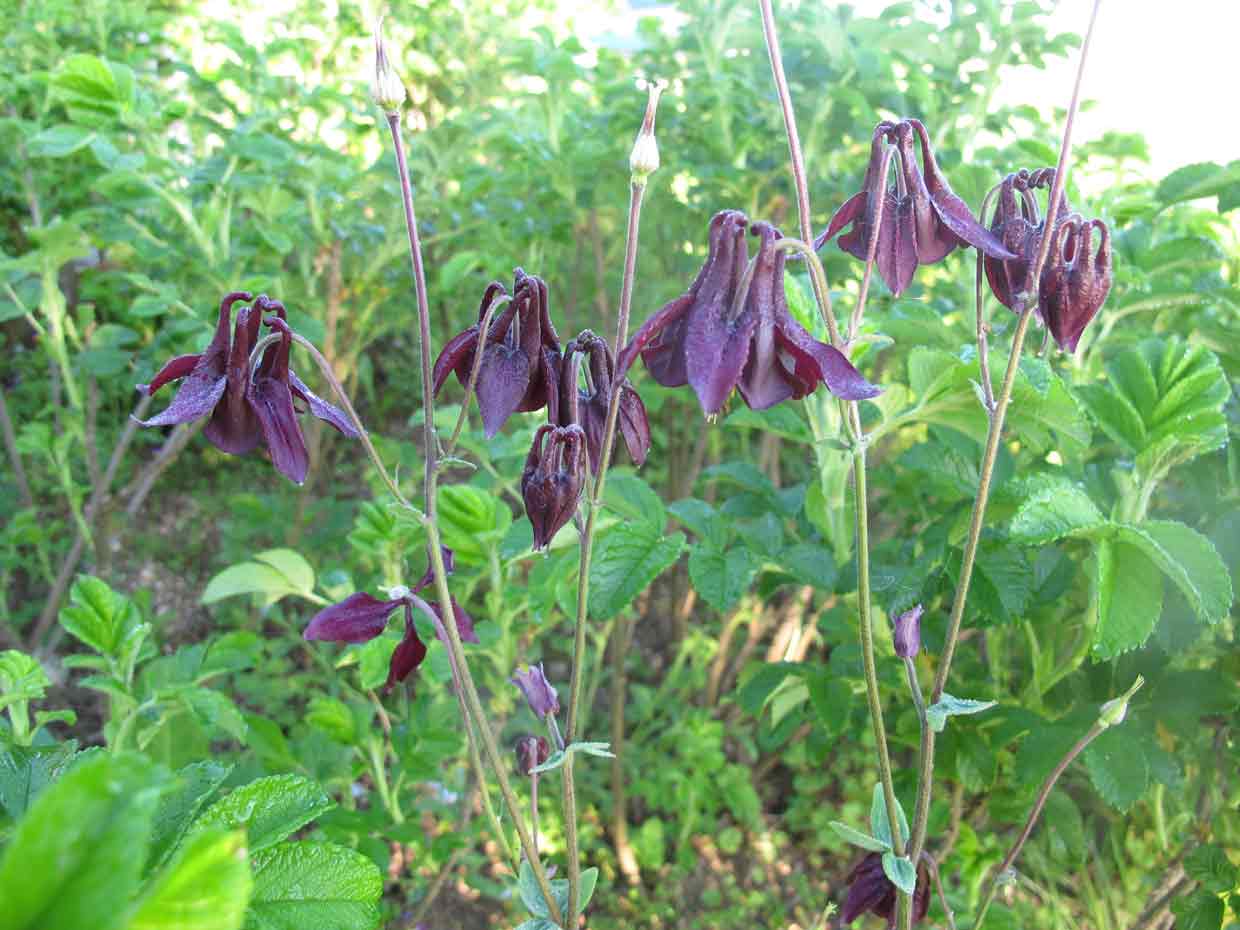 Von Aquilegia atrata hatte ich einmal Samen bekommen und offenbar darauf vergessen. Wie sie in die Rugosahecke kommt, ist mit ein absolutes Rätsel.[size=0]Sorry für das schlechte Foto, wollte hauptsächlich von euch wissen, ob sie es auch ist. Kontrastprogramm zu morenos Kunstwerk