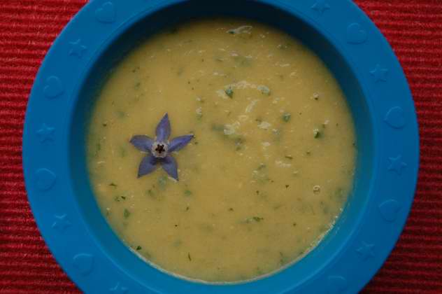 Heute gab es eine, überraschend sauleckere, Zucchinisuppe nach Naturas Rezept (etwas abgewandelt) :D . Drin waren zusätzlich ein paar Kartoffeln und an Kräutern Borretsch und Petersilie.