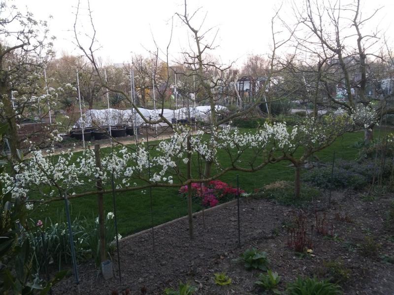 Neue Bilder von den Aprikosenspalierbäumen, stehen gut da, kräftig und gesund.