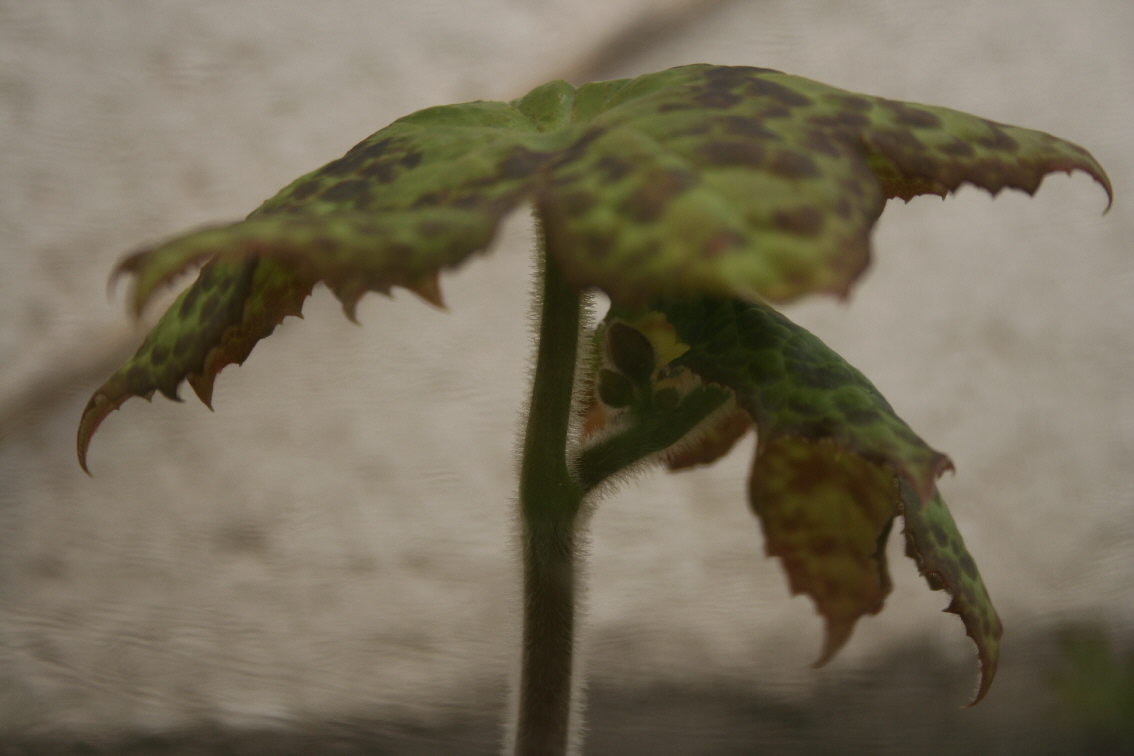 Ich erblasse vor Neid: zum ersten Mal hat Spotty Dotty mehrere Blätter, und schwupp hängen sie braun in der Landschaft herum, so eine Sauerei. Dabei war angeblich gar kein Frost mehr. Jetzt wird umgepflanzt, ich bin dieses Frosttheater leid!