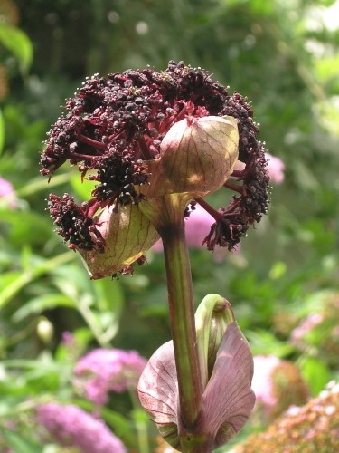 soll ich mit meinem bescheidenen Foto aushelfen?Angelica gigas beginnt gerade zu blühen, die Pflanze steht sehr feucht und ist etwa 2m hoch