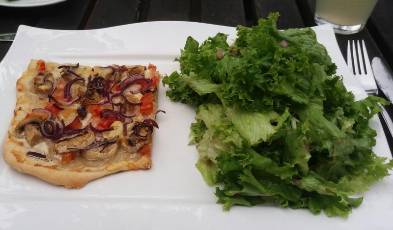vorgestern gabs nudeln mit einer soße aus rinderhack, zucchini, paprika, tomaten und kräutern.gestern waren wir essen. ich hatte jägerschnitzel mit spätzleund heute haben wir uns auf dem nachhauseweg einen yufkadöner mitgenommen.