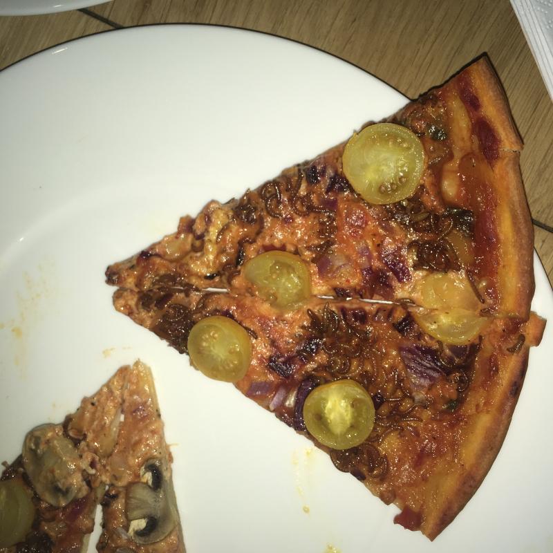 Danach gabs ganz fantasielos Pizza mit Buffalos. Hat auch gut geschmeckt, aber nicht so gut wie der viecherfreie Teil.