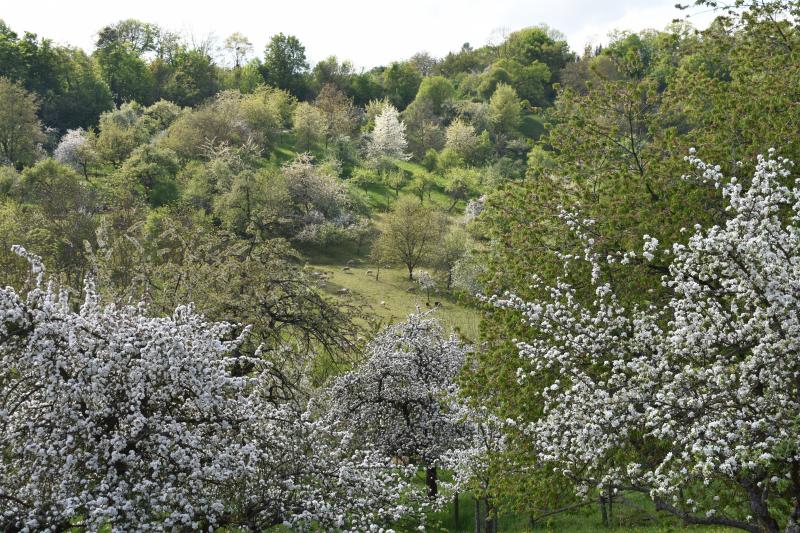 Bunte Wiesen voller Leben, Obstbäume, Weinberge.