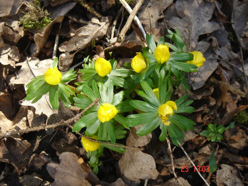 Hier ist der Schnee inzwischen ausreichend weggetaut und die ersten Winterlinge öffnen die Knospen, (...)