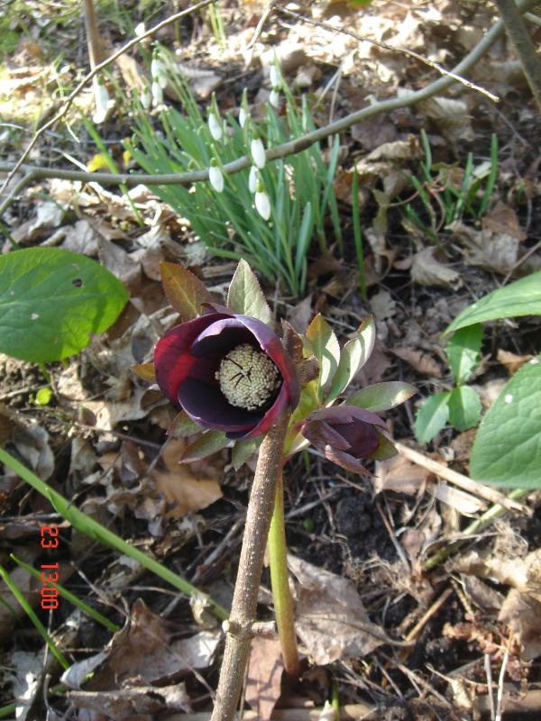Ein Helleborussämling, sehr schön dunkel, ziemlich weit weg von möglichen Elternpflanzen