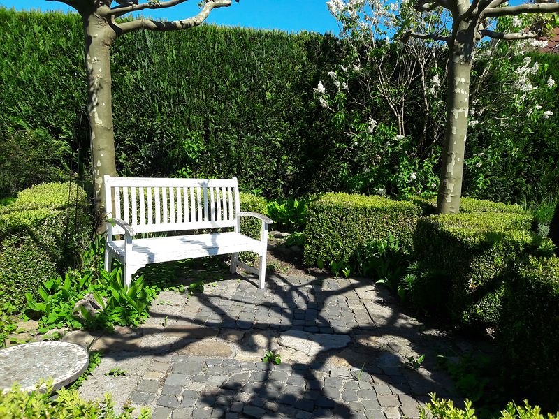 Es ist wirklich für einen neu gekauften Garten mal etwas ganz anderes. Ich glaube, dass die Meisten hier verwilderte Gärten am Anfang hatten, oder Bauland.... Häufig wird ja mal fix behauptet, formale Gärten nicht zu mögen - das behaupte ich auch gern - aber manchmal frage ich mich, ob wir da nicht auch gern mal aus der Not (die Pflege nicht zu schaffen) eine Tugend machen... das Ding mit dem Fuchs und den Trauben....