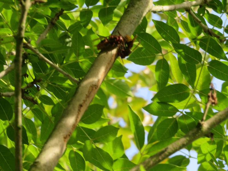 Also merke: Füttern hilft, aber bitte, bitte niemals aufhören, solange nicht die ersten Oktobernächte das Volk um die Ecke gebracht haben. Inzwischen hocken tagsüber wieder permanent 20-30 Hornissen im Baum.