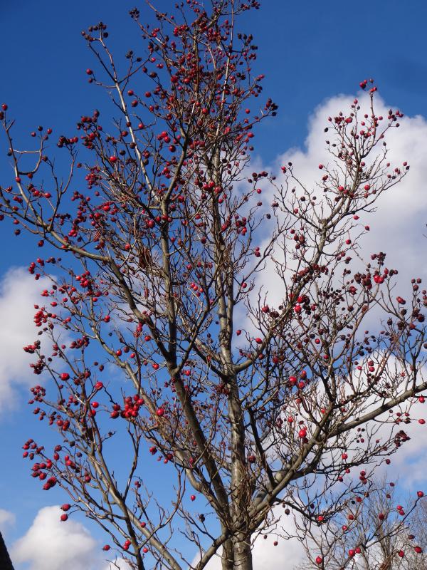 Am Feuerdorn und Ilex hängen auch noch die Früchte: