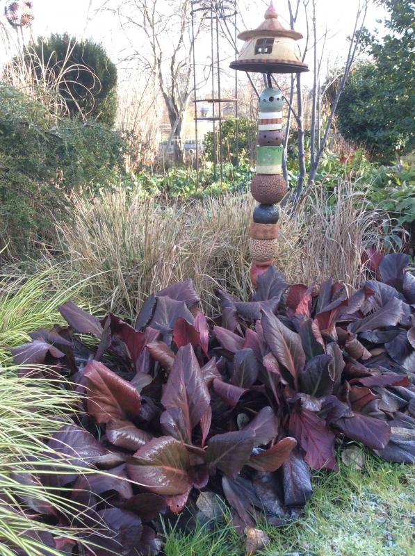 Unbekannte Bergenien: Ein Nachbarn hatte eine großen Fläche mit Bergenien bepflanzt. Eine kleine Ecke färbte im Winter wunderbar rot. Ich machte ein Tauschgeschäft mit Schneeglöckchen, Winterlingen und Märzbechern. Die Bergenien machen trotz Kahlfrost eine gute Figur.