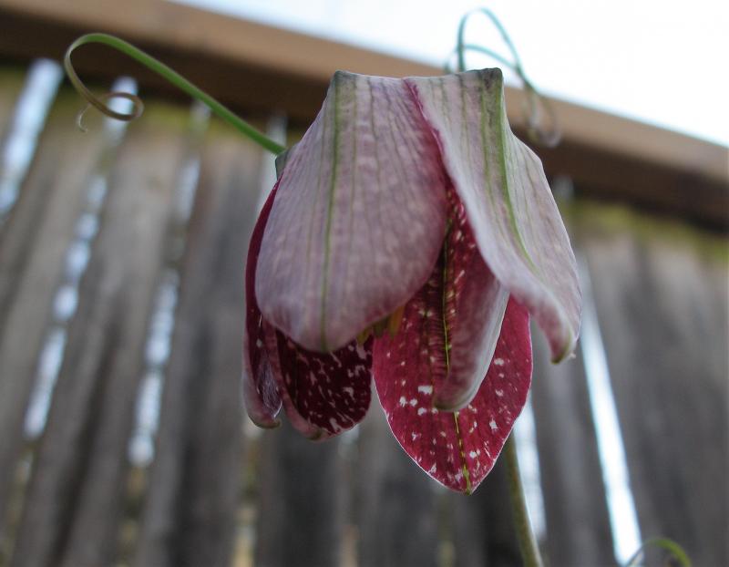 Hier war ich wieder mal tollpatschig - hab' die Blüte von Fritillaria walujewii abgebrochen. Aber so kann man sie zumindest besser fotografieren.