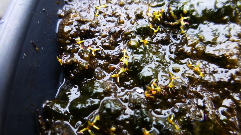 Langblättriger Sonnentau (Drosera anglica) Aussaat Dezember 2020. Axel hatte den Drosera Samen gespendet. Langblättrig ist er zwar noch nicht aber man kann schon etwas sehen.