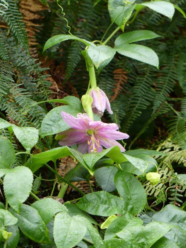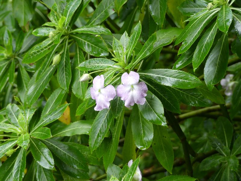 Neben zahlreichen großen Hortensien und vielfältigem Farnbewuchs stießen wir auf ein riesiges Exemplar von Impatiens sodenii (wirkte aus der Ferne wie ein Rhododendron).