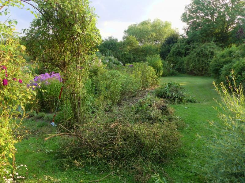 So oft wie heuer habe ich schon lange nicht mehr mähen müssen. Aber anstatt da wo nötig habe ich heute in der Nähe des Chrysanthemen-Sämlings-Prüfstelle gemäht um dort zu zupfen und zu mulchen. Als Geburtstagsgeschenk für Anke sozusagen.