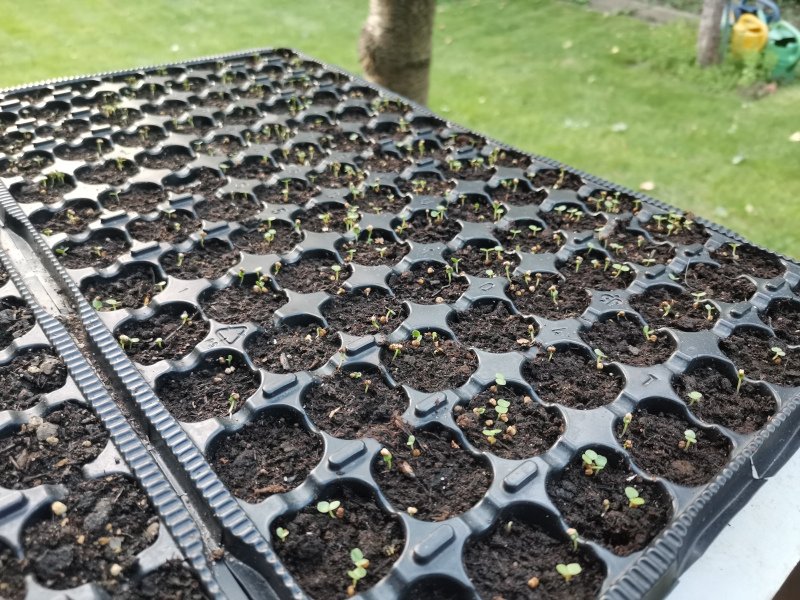 Bereits am 8.9. hatte ich ein paar Multitopfplatten gesät, falls wegen dem nassen Boden doch gepflanzt werden muss.