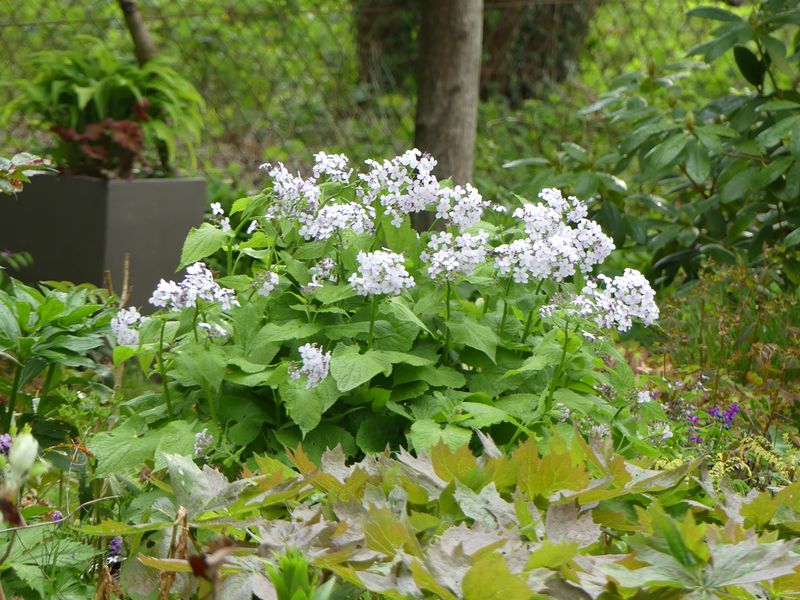 Lunaria rediviva blüht auch hier an vielen Stellen.