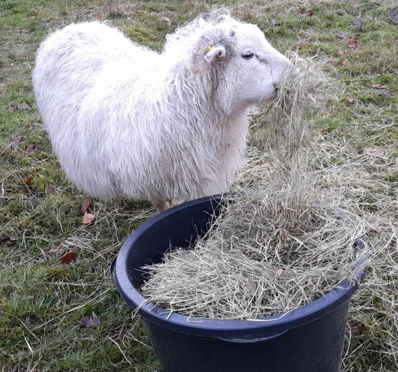 Erst mal ein Bild von Trutchen. Oldie, but goldie.Trutchen trägt "Toupet". Irgendeine Fremdwolle hat sie sich über die Hörner gehängt. Mutmaßung: Irgendeine Zibbe konnte Trutchens Aleinherrscherinsanspruch nicht akzeptieren. Sollte man aber. Trutchen ist Leittier. Sie genießt die Zeit ohne ihre Mutter Grete. Gleiches Kaliber ;D Die kleine Gruppe sitzt gerade auf Heuversorgung. Morgen ziehen sie um. Warum heute nicht... folgt
