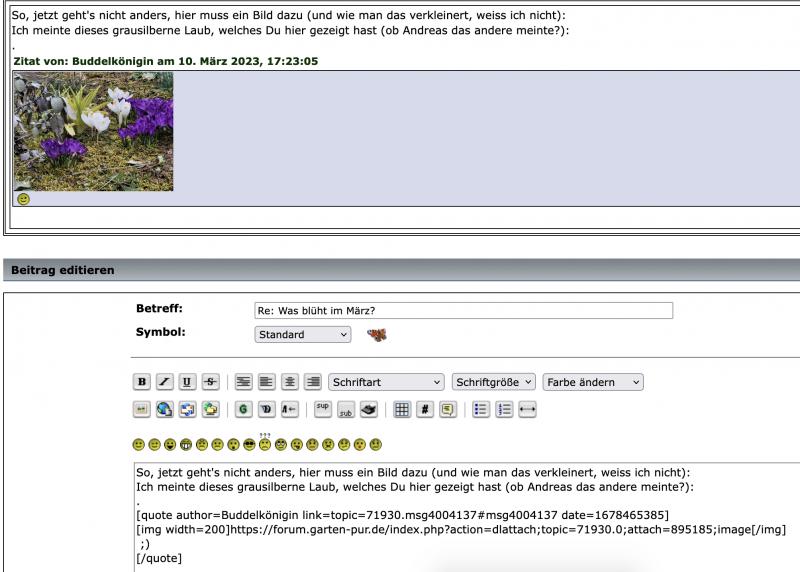 In dem Fall finde ich es auch sinnvoll, das Bild verkleinert mit zu zitieren, weil damit sofort klar ist, auf welche Pflanze sich die Frage bezieht.