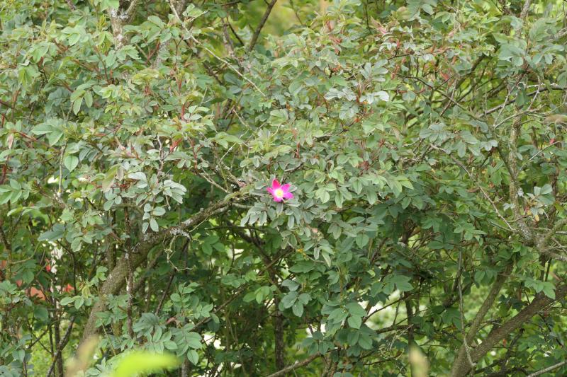 Rosa moyesii, möglicherweise eine Varietät, weil sie so rosa ist. Das habe ich nie final recherchiert.