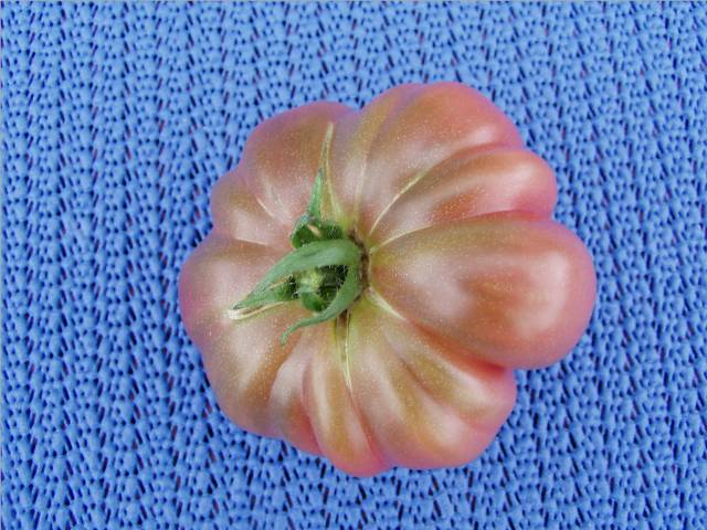 Hallo LislInnen ist Sie eher orange gefleckt.Sobald ich die nächste ernten kann werd ich ein Bild von der aufgeschnittenen Frucht machen.Übrigens, diese große Tomate hatte ganze 5 Körnchen.Die hab ich natürlich gleich gerettet.