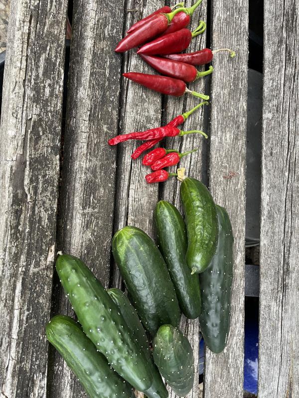 Ach ja, ich ernte noch grüne Tomaten mit Blütenendfäule ;D, Gurken und Zuccini, Stangenbohnen, Erbsen - gestern alle rausgemacht, ein Teil wird wohl nur noch Saatgut, habe es nicht vor dem Urlaub geschafft.....
