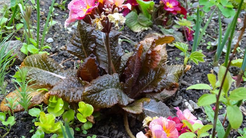 Bisher hatte ich die Schlüsselblumen immer nur auf meiner Wiese, aber es lohnt sich, auch welche in den Beeten zu verteilen, da werden sie auch schneller üppiger, was natürlich besonders bei den roten Exemplaren von Vorteil ist. Die goldgelbe im Vordergrund ist auch interessant, der Farbton ist viel dunkler als bei den normalen gelben, mit einem Hauch Rot hier und da.