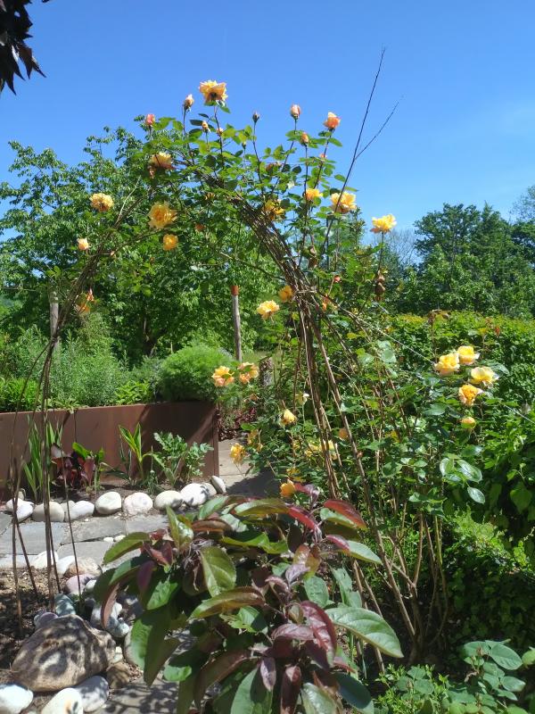 Könnte aber sein, daß die kletternde Sutter's Gold eh nicht so üppig wird, daß sie den hübschen Bogen niedermachen würde. Wie lange steht sie denn schon?