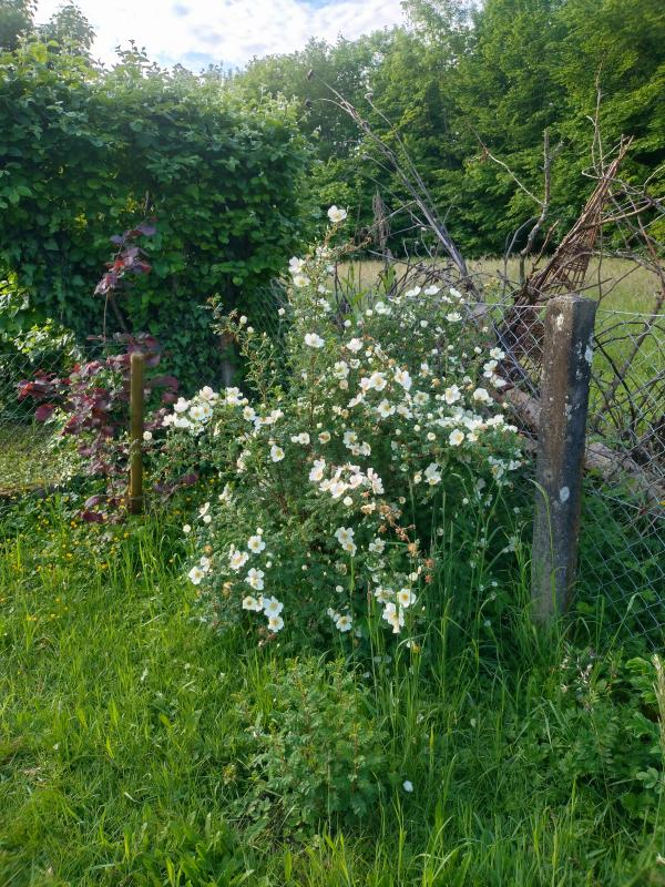 Die King of Scots habe ich sehr geliebt. Leider lebt sie hier, an der sog. Rosenböschung auf Gemeindegrund, nicht mehr. Sie wurde vom angrenzenden Grundstückseigentümer mit einigen anderen großen Strauchrosen ausgerissen, um Zugang zu schaffen für den Poolbau.