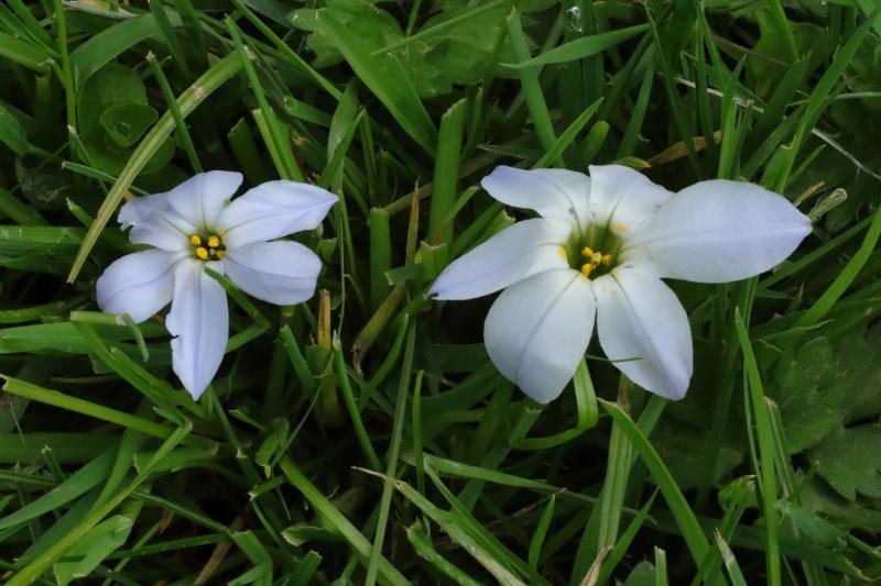 Verschiedene Ipheion blühen auch. Zum Vergleich: ´Summer Skies´ hat deutlich kleinere Blüten als der namenlose Sämling.