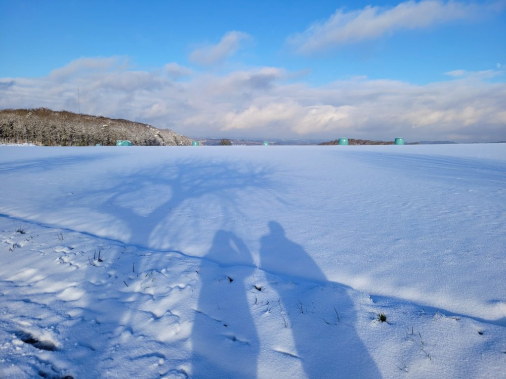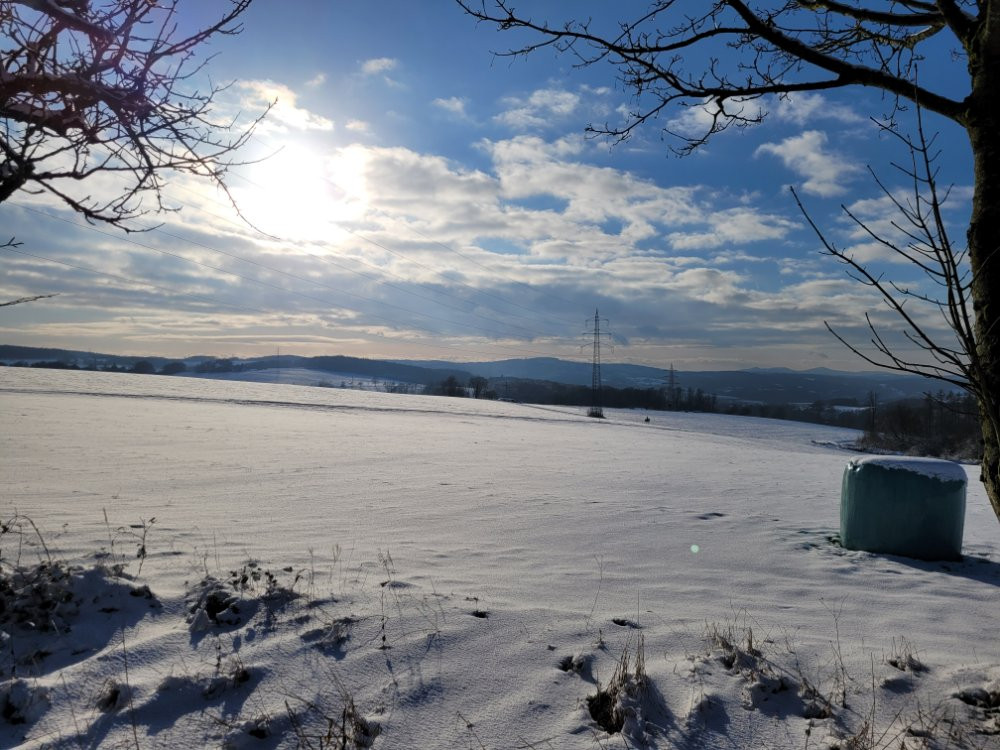Spaziergang bei etwa + 1 Grad, trocken mit teilweise blauem Himmel bei sonnigen Abschnitten, etwas oberhalb unseres Ortes. Winter von seiner schönsten Seite.