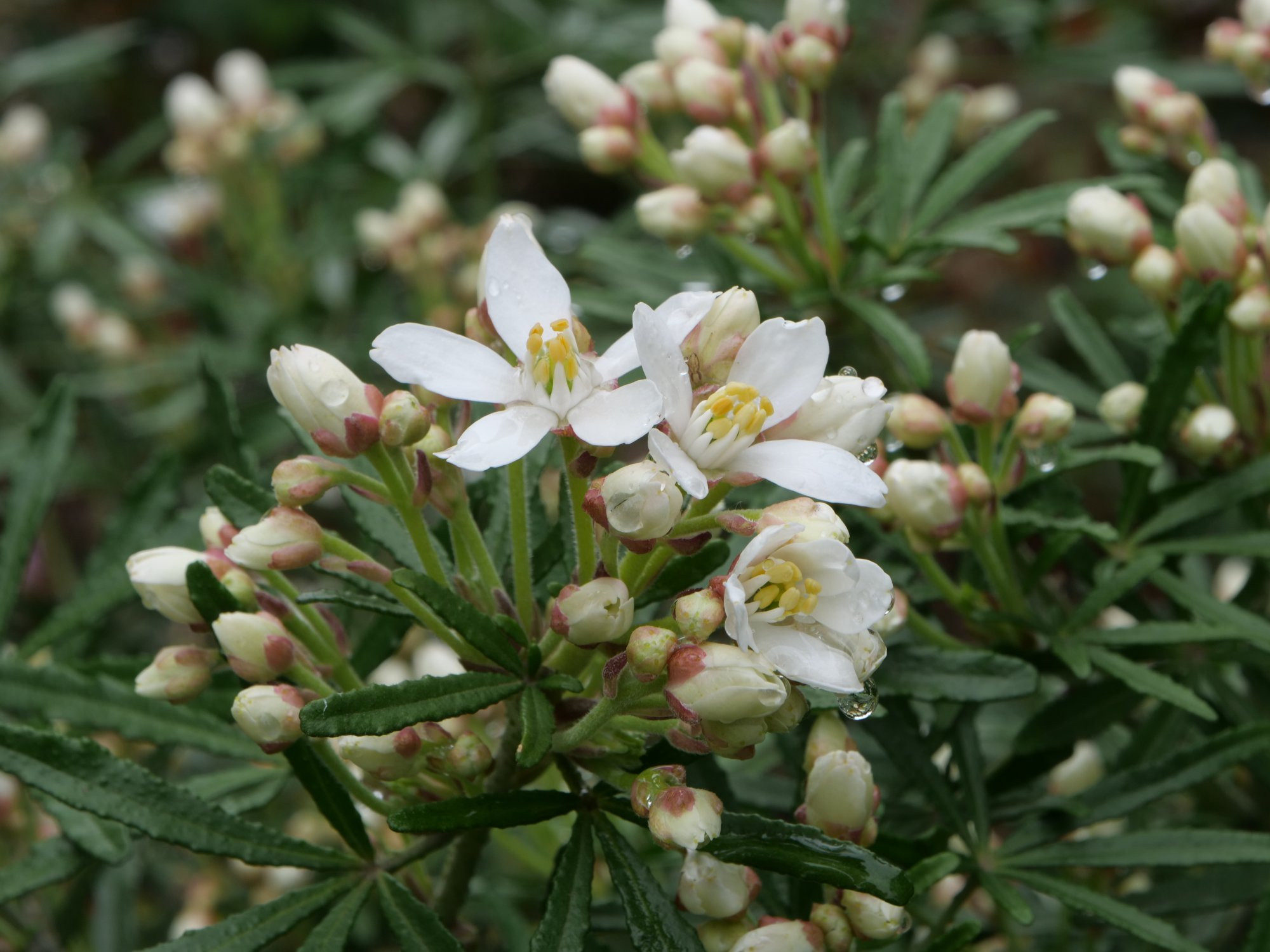 Ca. drei Wochen später als im letzten Jahr beginnt die Blüte bei Choysia aztec pearl.