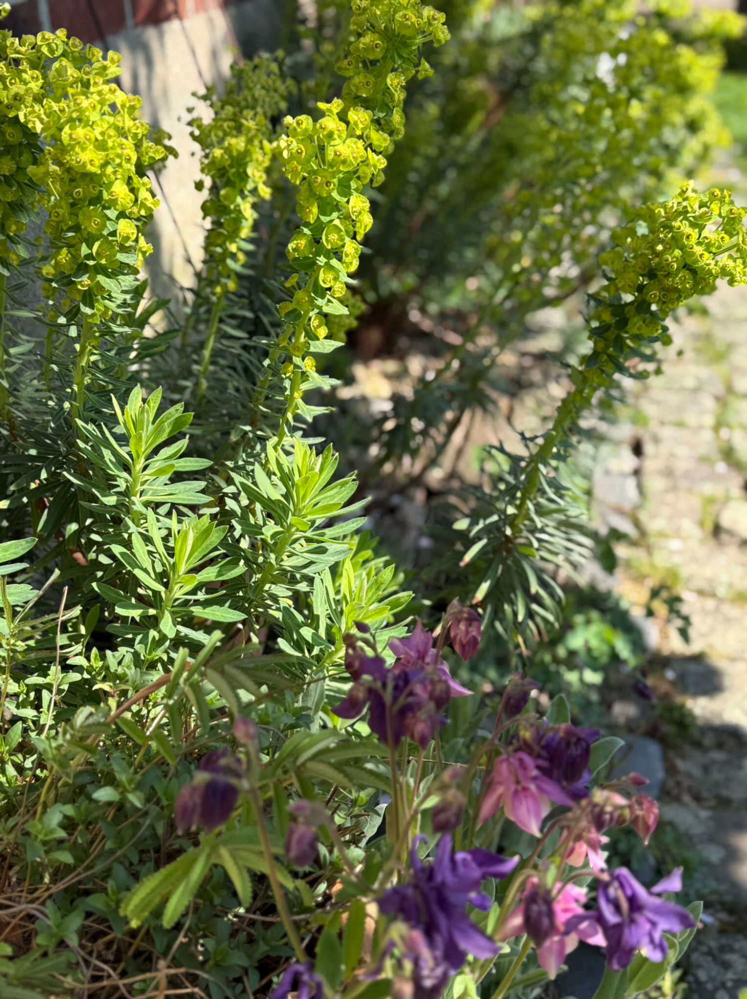 Hier ist heute auch endlich die erste Paeonie aufgeblüht, wie so oft die Mlokosewitschii am Haus vor der warmen Wand.
