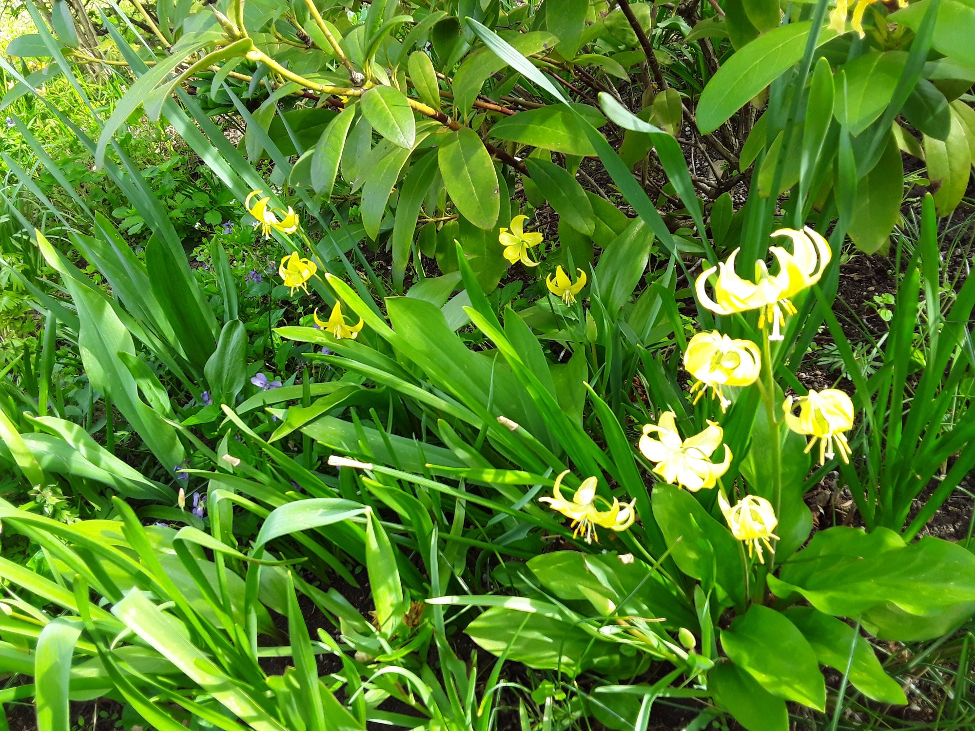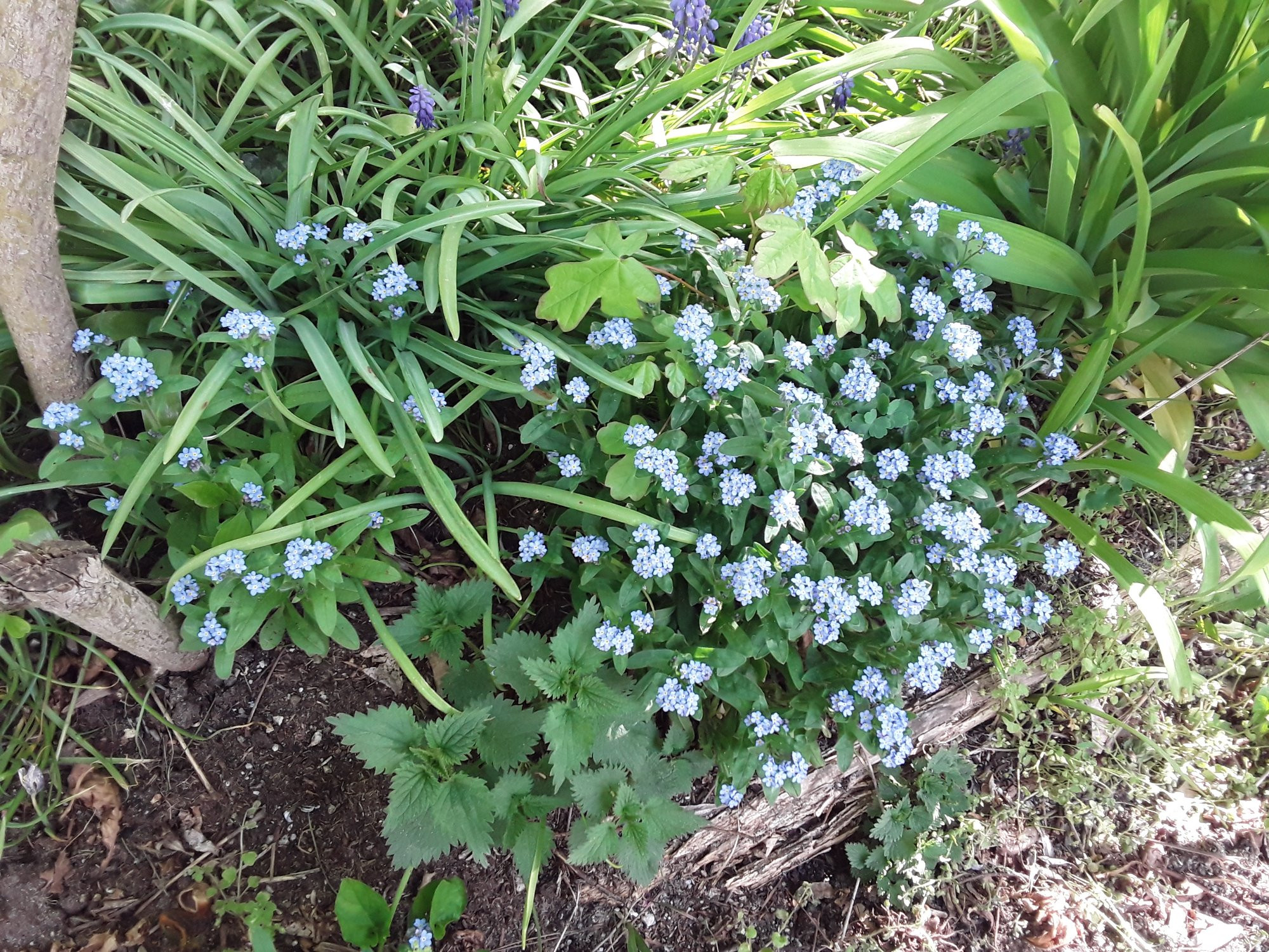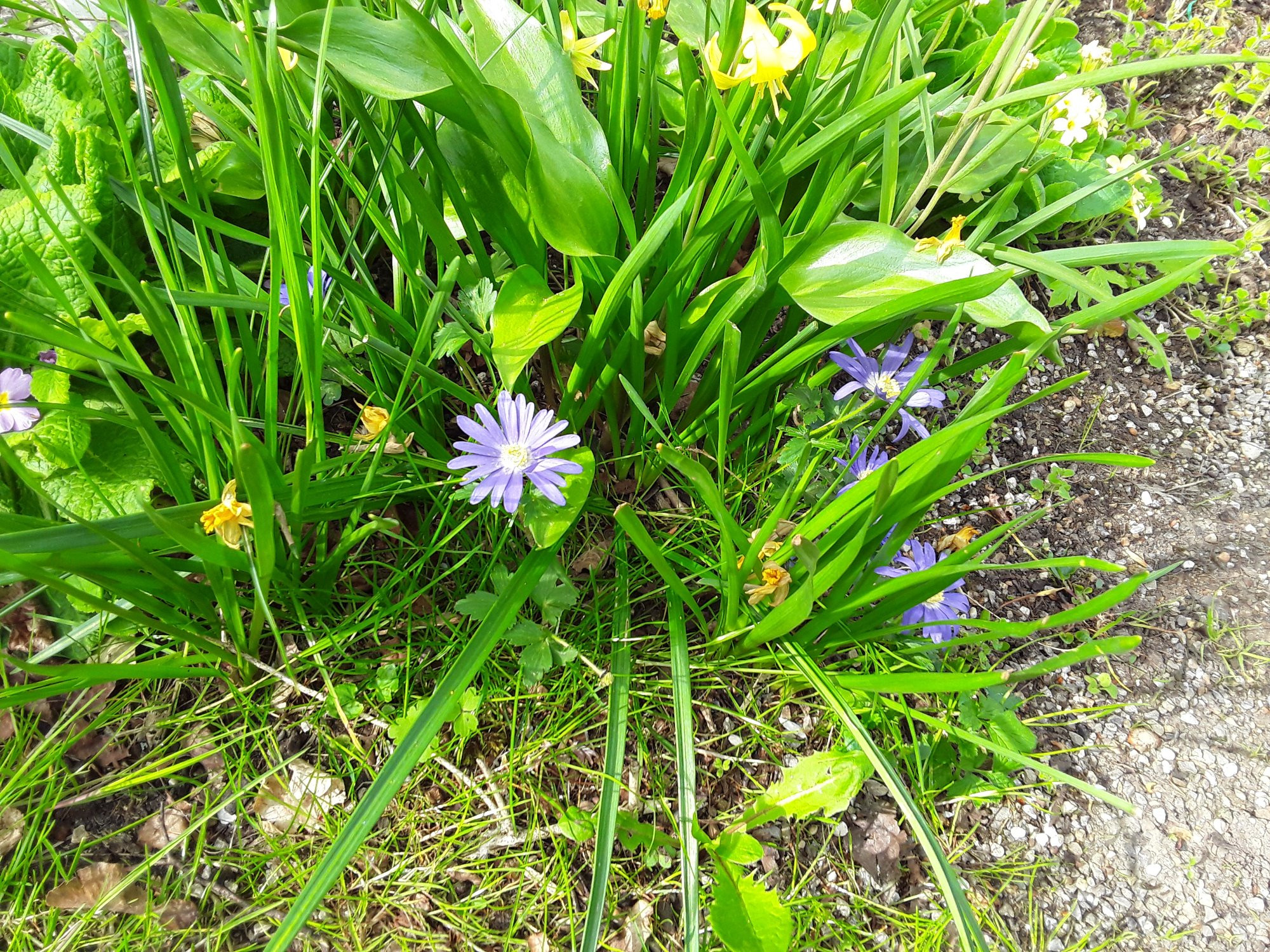 Es hat seit einigen Wochen kaum geregnet. Die Frühlingsblumen haben Stress: Anemone, Erythronium und Vergissmeinicht warten auf den Regen.