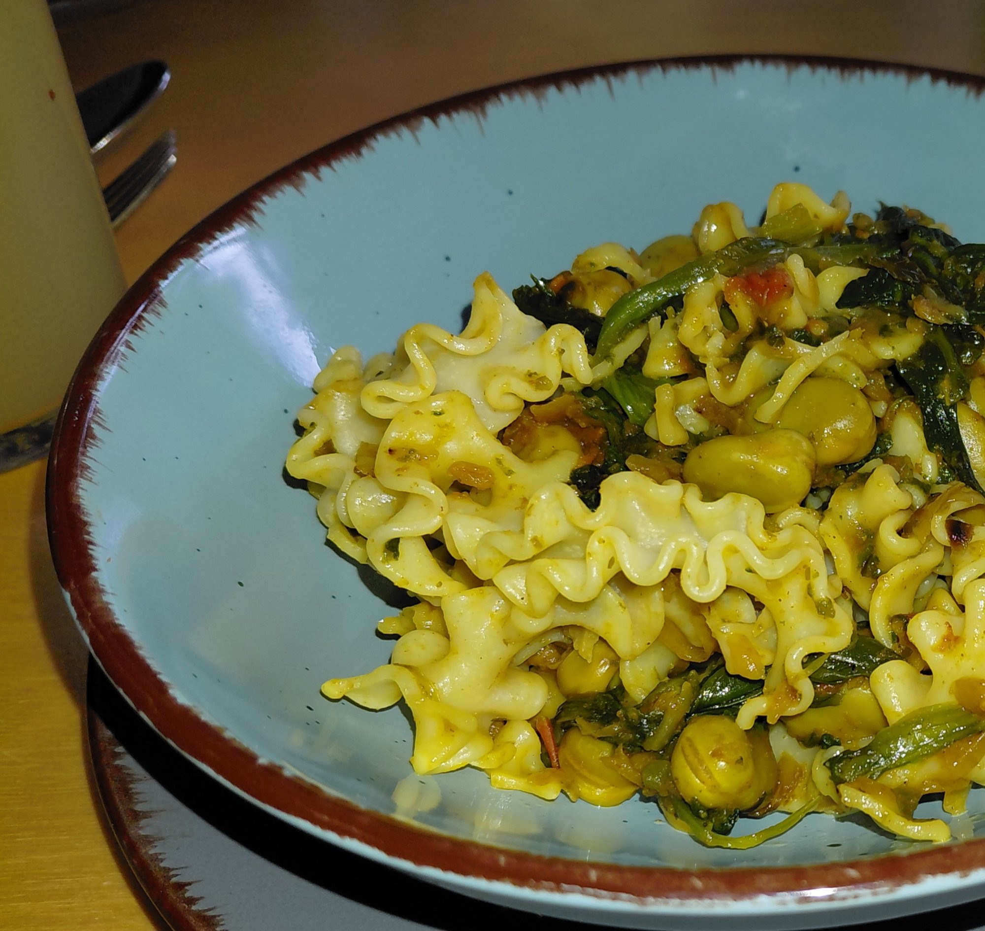 Pasta mit dicken Bohnen und Spinat