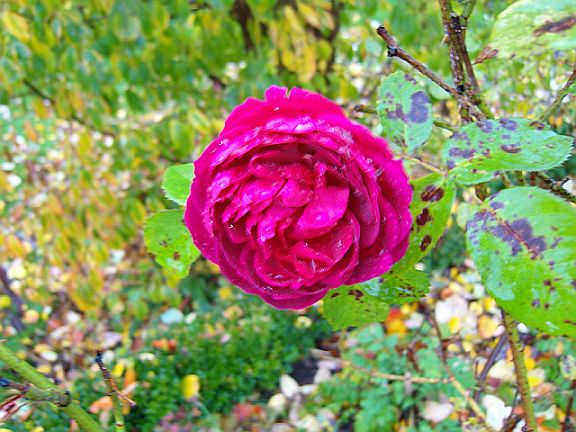 Martina, meine Kamera hat das Rot nicht einfangen können. Ich hab das Foto aber trotzdem eingestellt, weil ich sie gerne erwähnen wollte. Ich denke, man sollte ihr mehr Beachtung schenken. Sie hat auch bei kühlen Temperaturen einen Duft, dass die Nase nicht aus der Blüte will und ihr Rot ist für mein Empfinden ein sehr beruhigend dunkles. Interessant finde ich ja, welche Farbkapriolen deine Pflanze über den Sommer zeigte. Mit dem Abschneiden würde ich auch bis zum nächsten Jahr warten. Gerade bei den Remontanten hab ich festgestellt, dass sie auch nach einer Umpflanzung grössere Schnippeleien wohl doch nicht so mögen. Aber das kann durchaus auch in einem anderen Klima anders sein.