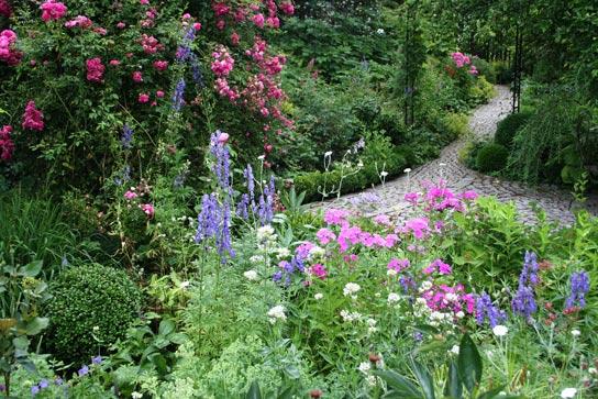Danke für den Link, Brigitte.Hier mein Garten Mitte Juli. Der Phlox blüht mit dem Eisenhut um die Wette