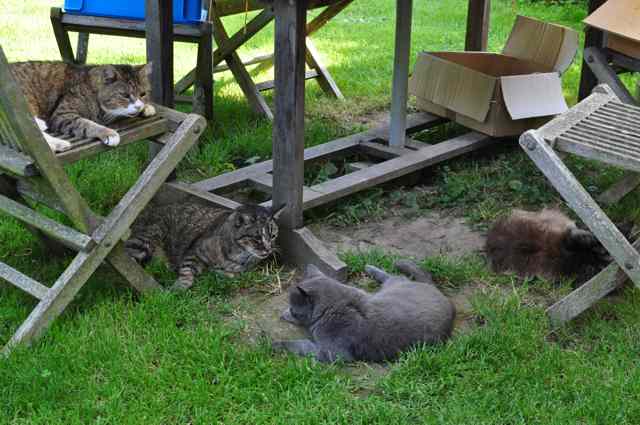 Bei 31°C im Schatten, war hier offensichtlich der kühlste PlatzVon li nach re: Schnürle, Odin, Silver und Flokati