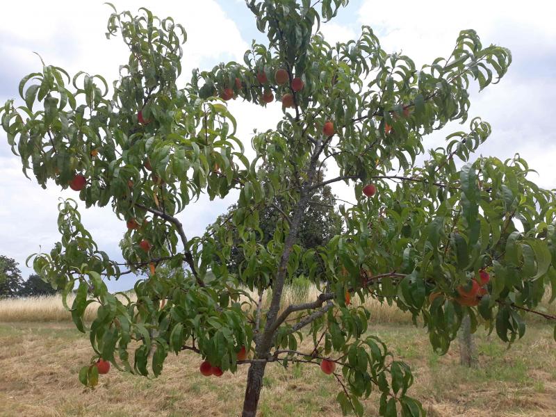 Redheaven trug aber nicht vital, Frühsorten wie Pfirsichendeckung hatten stark Steinbruch mit Ohrwurm- Ameisenbefall.