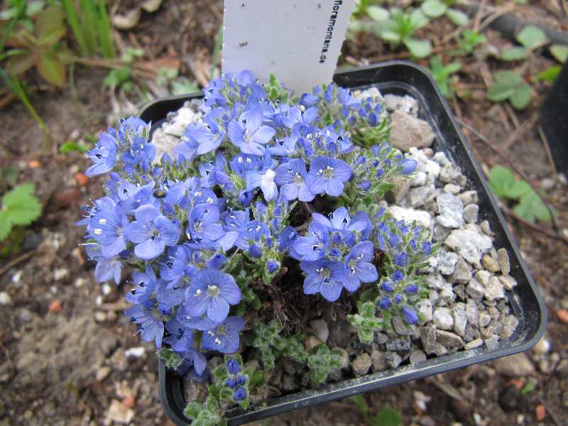 Veronika, der Lenz ist da...noch im Topf (Beute von der letzten Staudenbörse): Veronica cespitosa 'Typ Eid'