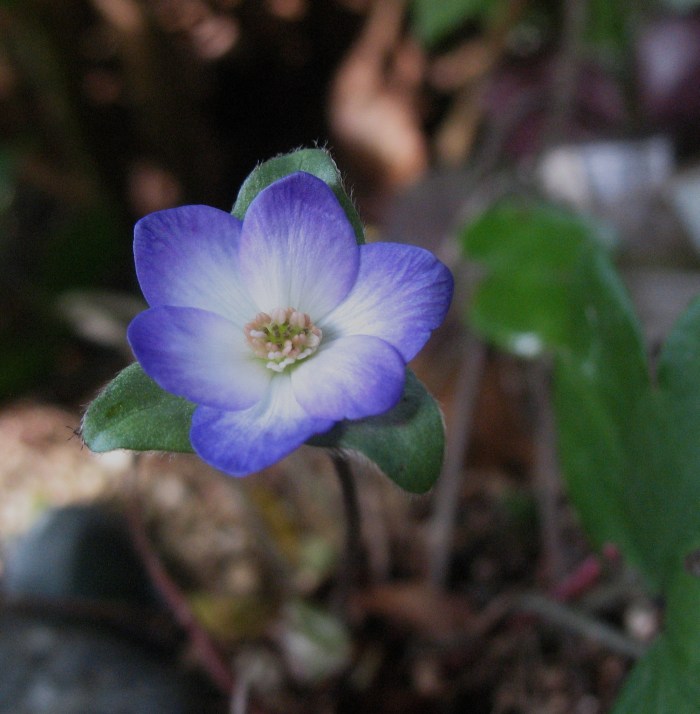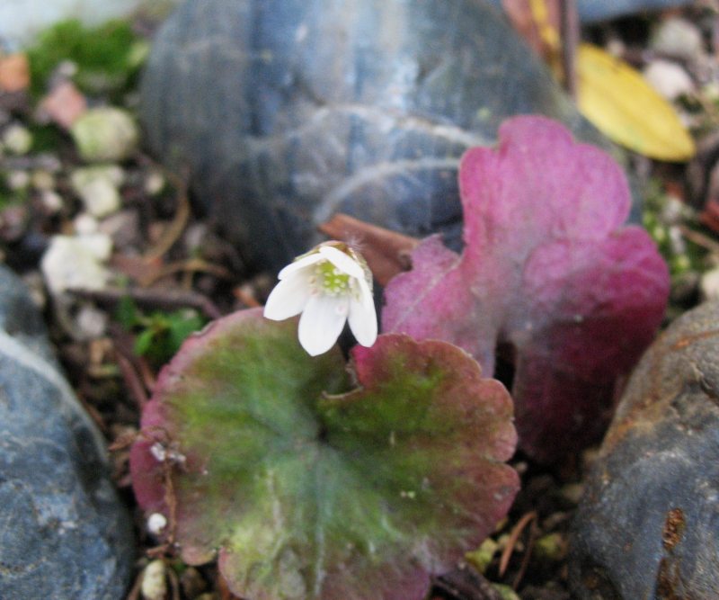 Ich weiß auch nicht, was hier los ist. Immer mehr Hepatica zeigen einzelne Blüten. Zuerst Hepatica transsilvanica, dann einige nobilis, jetzt kommt auch noch H. henryi dazu. Ob die eine kurz Kaltwetter Periode Anfang Oktober für den Winter gehalten haben und das milde Weter jetzt für Frühling?