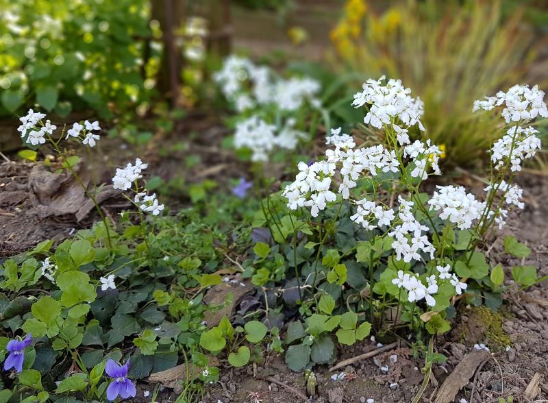 Ich mag das Waldschaumkraut, im Herbst kommen noch einige dazu.