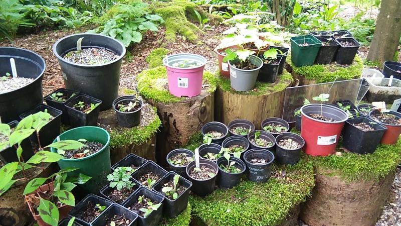 So sieht es zZ. in der etwas chaotischen Pflanz und Kinderstube aus. Wenn sie es hier bis zum Jugendalter überleben haben sie ach gute Chancen im Waldgarten zu bestehen.